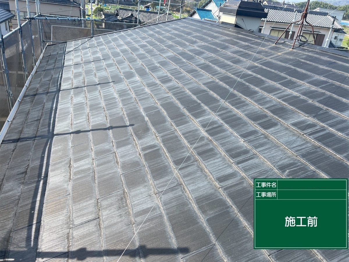 素材はスレート(カラーベスト)でしたが、全体的に色あせや汚れが目立っていました。これは表面の防水性能が切れてしまっている証拠です。