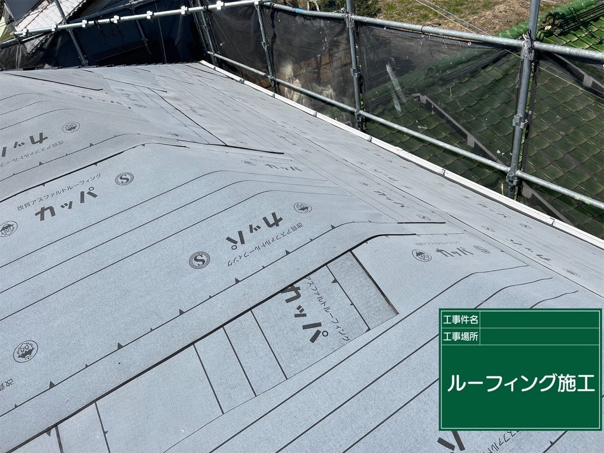 新しい屋根を載せる前に、屋根全体を防水シート(ルーフィング)で覆います。