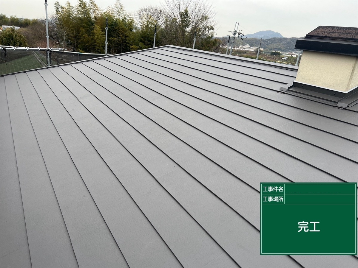 どんよりしていた屋根が、シャープでかっこいい金属屋根に生まれ変わりました。お家の印象もガラッと明るくなって、お客様にも「これで安心して過ごせます」と大変喜んでいただけました。